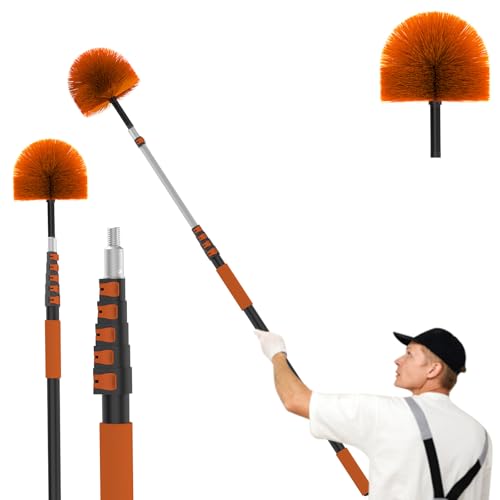Plumeau Telescopique 6m, Tete De Loup Telescopique avec Perche d'extension de 4.25m, Balai Toile d'Araignée pour Ventilateur De Plafond, Fenêtres, Murs Et Abat-Jour, Lavable en Machine (Orange)
