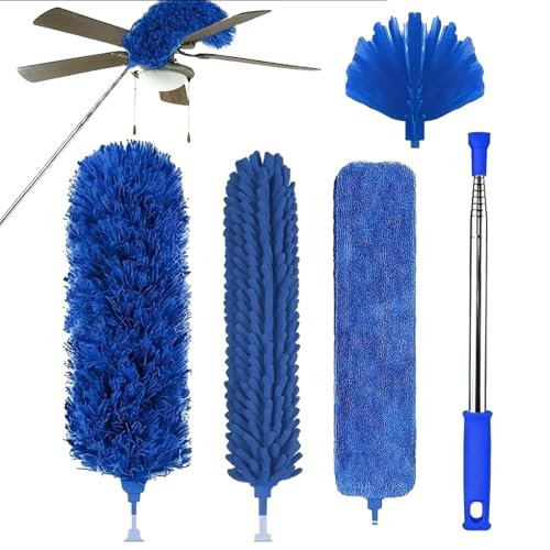 ETUCYNG 4 Pièces Plumeau Telescopique Microfibre,Plumeau Poussiere Telescopique,Lavable en Microfibre avec 2m Tige Télescopique Nettoie Les sans Effort Enlève Poussière Et Les Toiles D'araignées