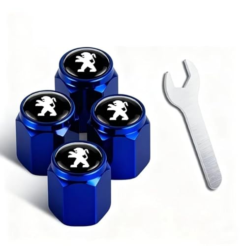 ONEMAJI 4 Pièces Bouchons de Valve de Pneu pour Peugeot 5008 4008 3008 2008 508 408 308 208 108 301 107, Couvercles Anti Poussière de Tige Hexagonaux Accessoires de Remplacement,A Blue