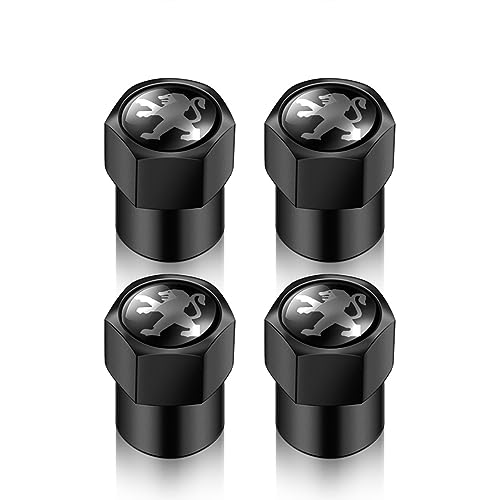 BrohN Bouchons de Valve de Pneu de Voiture 4 pièces Anti-poussière pour Peugeot 206 307 308 3008 207 208 407 508 2008 5008 107 106 205 4008,Black Style