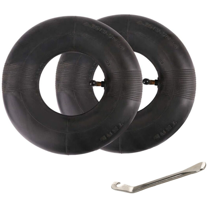 Akozon Pneu en Caoutchouc Solide 10 Pouces Pneus de Remplacement Anti-Explosion 2 Pièces 4.10/3.50-4