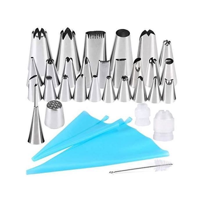 AiQInu Poche a douille patisserie 34 pcs, 24 douilles en acier inoxydable, 2 poches à douille réutilisables en silicone, pour gâteaux, cupcakes, cookies, pâtisseries