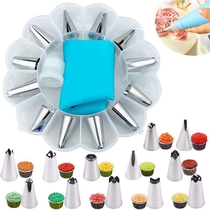 Douilles Patisserie 14 Pcs Poche a Douille Accessoires De Decoration En Acier Inoxydable Decoration De Gateaux Bleu