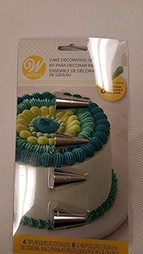 Wilton Poche a Douille Patisserie 12 Pièces : 8 Poches Jetables 30 cm et 4 Douilles Métal (Étoile n°18, n°32, Rond n°5, n°12), Kit de Décoration Gâteaux, Cupcakes et Pâtisseries