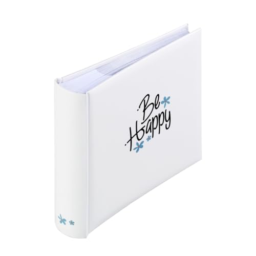 Hama Album photo à pochette 'Good Things Be Happy' (Album mémo, 200 photos 10 x 15cm, 100 pages blanches, Dim. 22.5x22cm, Idéal Scrapbooking, idée cadeau, Couverture Rigide, Pochette Carte SD) Blanc