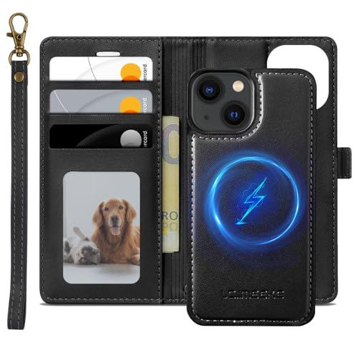XTCASE Magnétique Coque pour iPhone 13 Mini / 12 Mini Compatible avec MagSafe, 2 in 1 Housse en Cuir PU Amovible Protection Etui à Rabat Fentes Carte Pochette de Portefeuille Antichoc, Noir