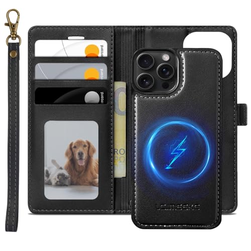 XTCASE Magnétique Coque pour iPhone 16 Pro Compatible avec MagSafe, 2 in 1 Housse en Cuir PU Premium Amovible Protection Etui à Rabat Fentes Carte Pochette de Portefeuille, Noir