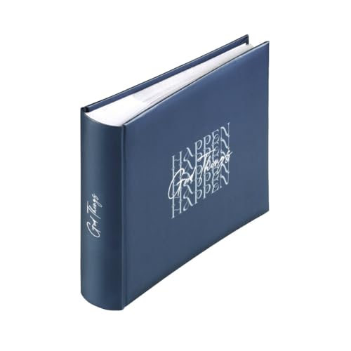 Hama Album photo à pochette 'Good Things Happen' (Album mémo, 200 photos 10 x 15cm, 100 pages blanches, Dim. 22.5x22cm, Idéal Scrapbooking, idée cadeau, Couverture Rigide, Pochette Carte SD) Bleu