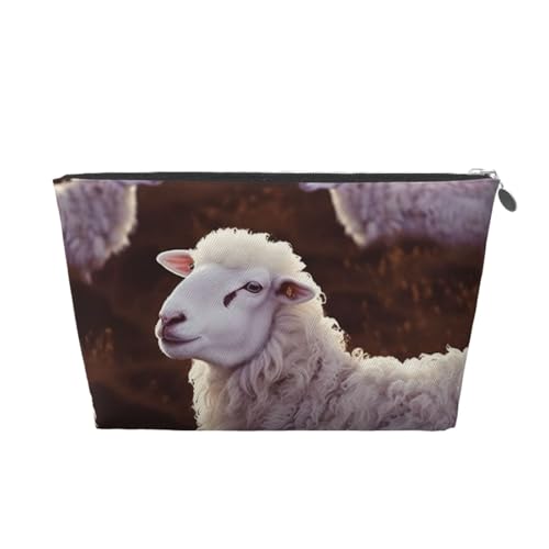 KKLWEGU Trousse de maquillage en cuir synthétique imperméable avec motif de mouton - Trousse de toilette de voyage - Pochette dorée à fermeture éclair pour femme, Argenté., Taille unique
