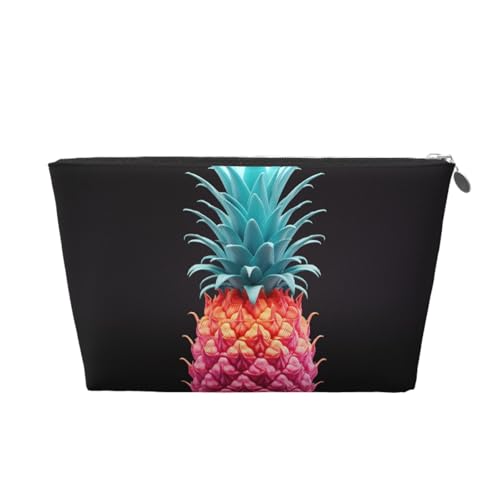 KKLWEGU Trousse de maquillage en cuir synthétique étanche avec ananas coloré - Trousse de toilette de voyage - Pochette dorée à fermeture éclair pour femme, Argenté., Taille unique