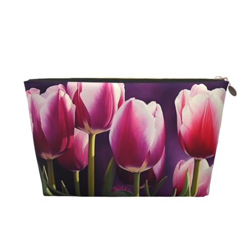 KKLWEGU Trousse de maquillage en cuir synthétique étanche avec motif tulipes - Trousse de toilette de voyage - Pochette dorée à fermeture éclair pour femme, Argenté., Taille unique