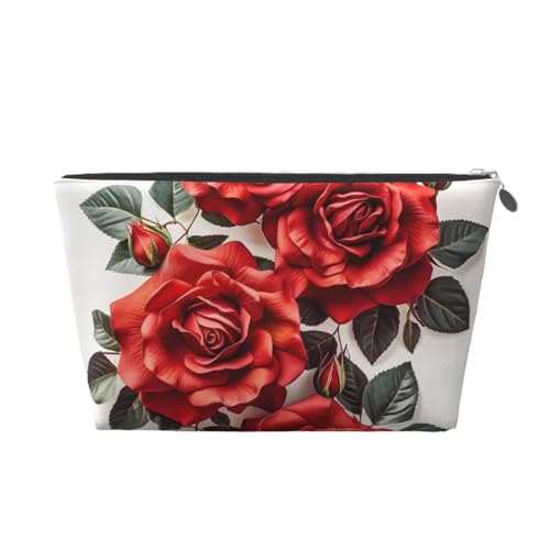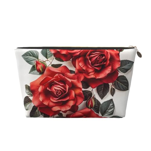 KKLWEGU Trousse de maquillage en cuir PU étanche avec motif rose rouge - Trousse de toilette de voyage - Pochette dorée à fermeture éclair pour femme, Argenté., Taille unique
