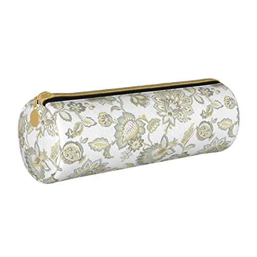 Lawenp Étui à Crayons cylindrique en Cuir Motif Fleur dorée Pochette à Crayons Sac de Rangement de Papeterie Portable pour collège