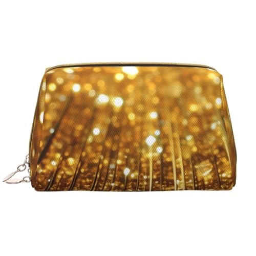 KKLWEGU Trousse de maquillage en cuir PU étanche avec lumière d'autoroute - Trousse de toilette de voyage - Pochette dorée à fermeture éclair pour femme, doré, Taille unique