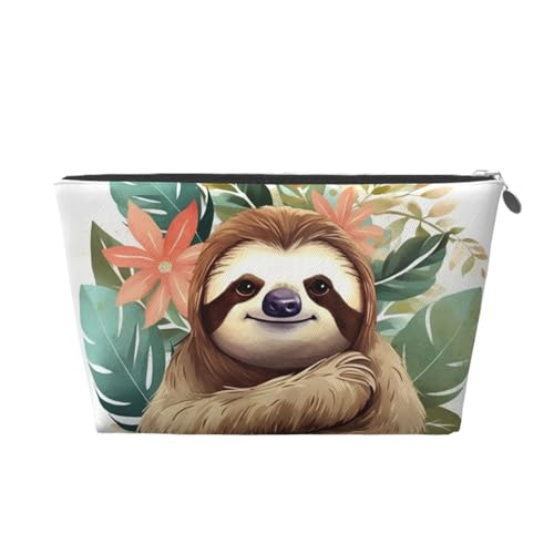KKLWEGU Trousse de maquillage en cuir PU imperméable avec motif paresseux et feuilles - Trousse de toilette de voyage - Pochette dorée à fermeture éclair pour femme, Argenté., Taille unique