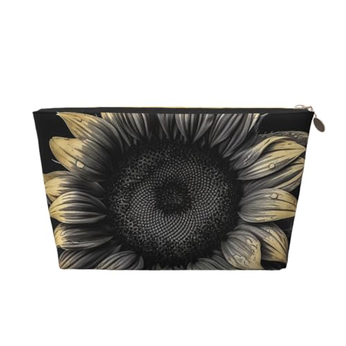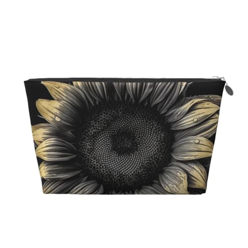 KKLWEGU Trousse de maquillage en cuir PU étanche avec motif tournesol - Trousse de toilette de voyage - Pochette dorée à fermeture éclair pour femme, doré, Taille unique