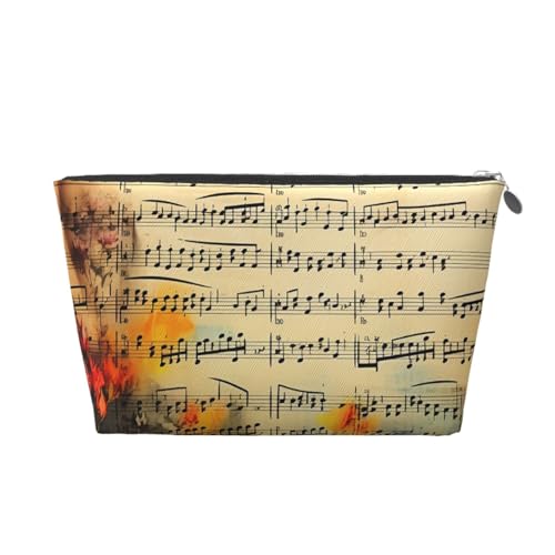 KKLWEGU Trousse de maquillage en cuir PU étanche avec note de musique - Trousse de toilette de voyage - Pochette dorée à fermeture éclair pour femme, doré, Taille unique