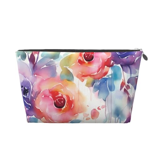KKLWEGU Trousse de maquillage à motif floral aquarelle en cuir synthétique étanche - Trousse de toilette de voyage portable - Pochette dorée à fermeture éclair pour femme, Argenté., Taille unique