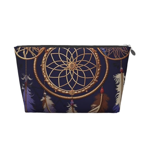 KKLWEGU Trousse de maquillage American Dream Catcher en cuir PU étanche - Trousse de toilette de voyage - Pochette dorée à fermeture éclair pour femme, Argenté., Taille unique