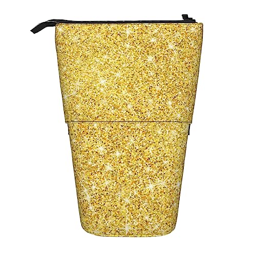 Melbrakin Trousse à Crayons à Texture pailletée dorée, Pochette à Crayons sur Pied, Trousse à Crayons télescopique