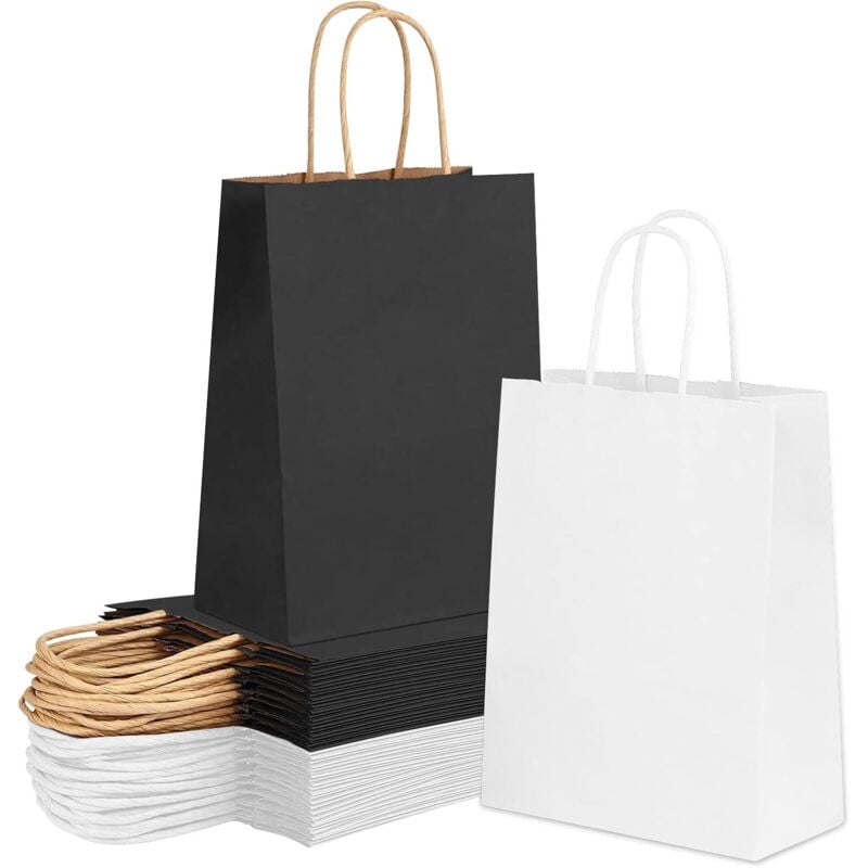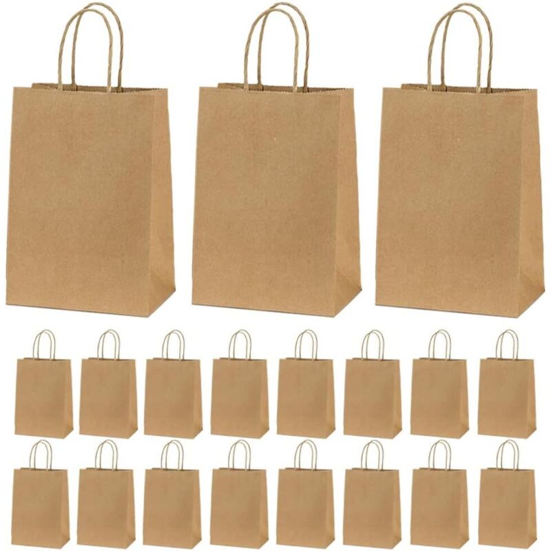 Lot de 20 Sac Papier Kraft avec Poignée 21 x 15 x 8cm Pochette Cadeau Brun Sacs d'emballage en Papier Kraft