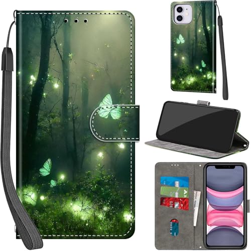 Haninsuze Coque pour iPhone 11, Etui Protection Housse Premium en Cuir PU Portefeuille, [Ranges Cartes] [Fonction Support] Pochette pour iPhone 11, Papillon forestier