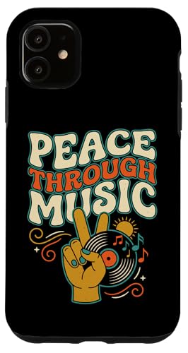 Pochette de Disque Vinyle rétro Peace Through Music Groovy Hippie Coque pour iPhone 11