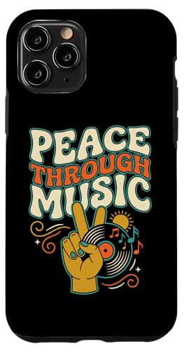 Pochette de Disque Vinyle rétro Peace Through Music Groovy Hippie Coque pour iPhone 11 Pro