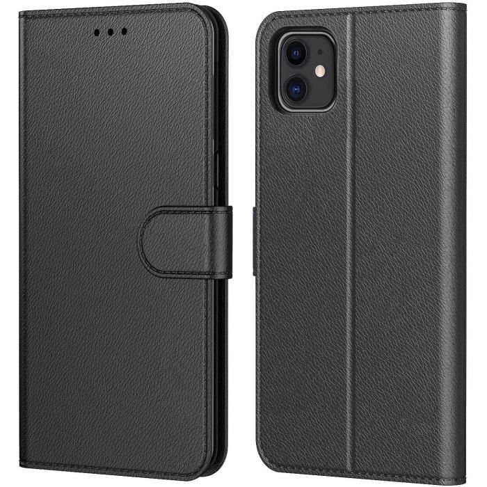 N&T Coque iPhone iPhone 11 Pochette Etui Housse iPhone 11 Cuir à Clapet avec Fermeture Magnétique et Multifonctionnel Noir