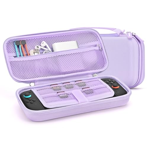 Pochette Switch 2 pour NS Switch 2 (2025),Housse Switch 2 avec 19 Emplacements pour Cartes de Jeu,Protection Switch 2 Comprenant Une Bandoulière,Une Dragonne et des Autocollants (Violet)