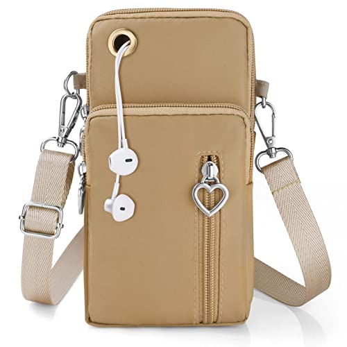 Tohrugue Petit Sacoche Telephone Portable Femmes,Sac Téléphone Portable Femme,Petit Portefeuille de Sac à Main de téléphone,Crossbody Pochette Sacoche Running Armbag (Kaki)