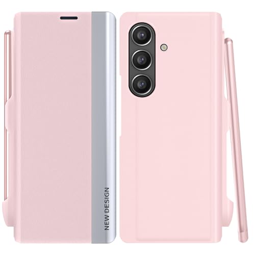 KOGENG Coque pour Samsung Galaxy Z Fold 7 avec Porte-S Pen, Magnétique Housse en Cuir PU Premium Etui à Rabat, Antichoc Flip Pochette Protection Telephone pour Samsung Z Fold 7 5G Case (Rose)