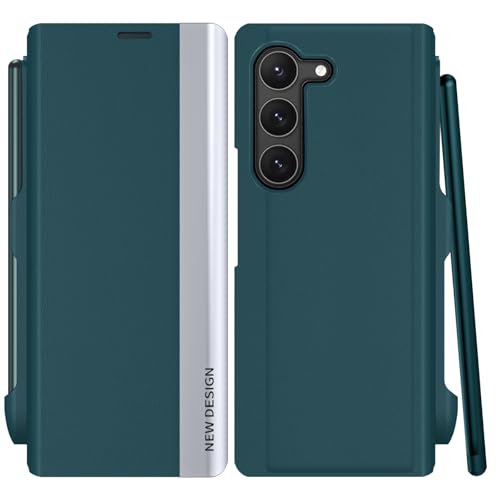 KOGENG Coque pour Samsung Galaxy Z Fold 5 avec Porte-S Pen, Magnétique Housse en Cuir PU Premium Etui à Rabat, Antichoc Flip Pochette Protection Telephone pour Samsung Z Fold 5 5G Case (Vert)
