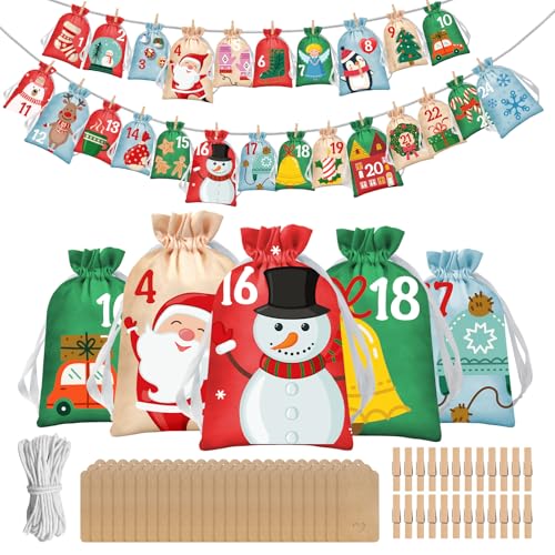 Tarklanda Calendrier de l'Avent Vide à Remplir 2025, Calendrier de l'avent à Remplir Femme Homme Enfant, 24 Pochette Tissu Kit avec Numeroté Cadeaux Décoration de Noël