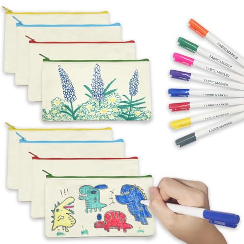ICEPAPA, 8 Pochette Tissu Zippée et 8 Marqueur Textile, Trousse à Crayons Vierge Set de Dessin, idéal pour Cadeau Anniversaire Enfants Invites, Cadeau Invité Mariage et Prix de lot Kermesse