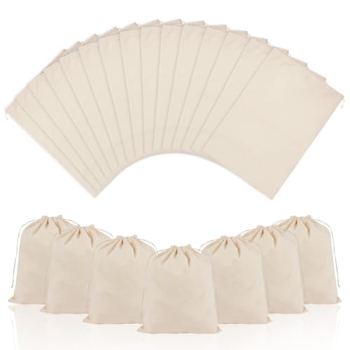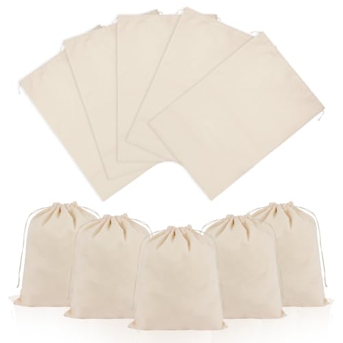 OFFCUP 10PCS Sachet en Coton Tissu, 25 * 30cm Sac Cordon Coton Sac Toile de Jute, Petit Sachet Cadeau Avec Serrage, Pochette Tissu Cordon Pochettes à Bijoux pour Mariage Bonbons Lavande Fête
