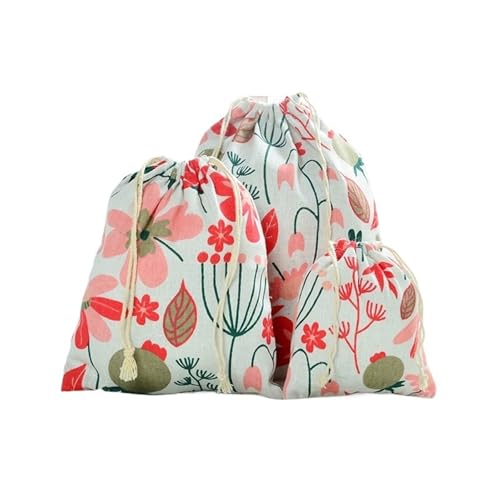 WDSBZNB Pochon Tissu Sacs de Rangement en Coton imprimé Floral, 3 pièces, for Couches, Grande Taille, Emballage Cadeau de noël et de Mariage, Pochettes à Cordon en Dentelle(Color-08)