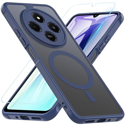 Hensinple Magnétique Coque pour Redmi 14C/Poco C75 (6.88''), Coque pour Xiaomi 14C avec Protecteur D'écran, Antichoc Étui de Protection Mat Translucide pour Redmi 14C/XiaoMi Poco C75, Bleu