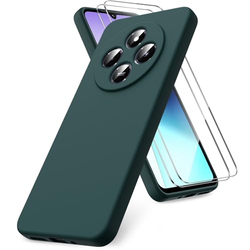 Vansdon Coque Compatible avec Xiaomi Redmi 14C/Xiaomi Poco C75, 2 Film de Protection en Verre trempé, Housse Souple en TPU en Silicone Liquide, Housse en Caoutchouc Antichoc - Vert Nuit