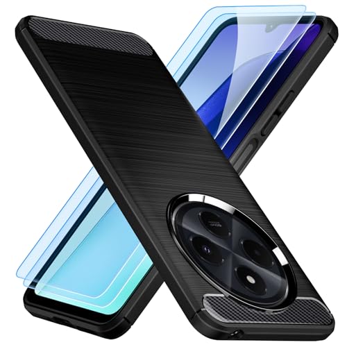 TesRank Coque pour Xiaomi Redmi 14C / Poco C75 Coque + Lot de 2 Verre Trempé, [Fibre de Carbone] Housse Souple Flexible en Premium TPU étui, Anti-Rayures/Antichocs-Noir