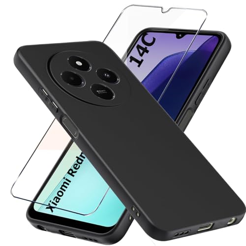 LYJERRY Silicone Coque avec Verre trempé Compatible avec Xiaomi Redmi 14C / Poco C75 Etui,Noir Souple Housse Pochette Gel Fine pour Xiaomi Redmi 14C / Poco C75 Coque avec Film ecran