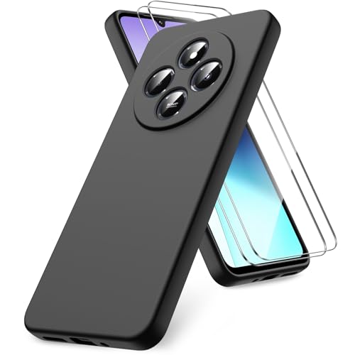 Vansdon Coque Compatible avec Xiaomi Redmi 14C/Xiaomi Poco C75, 2 Film de Protection en Verre trempé, Housse Souple en TPU en Silicone Liquide, Housse en Caoutchouc Antichoc - Noir