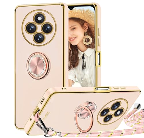 TVVTPU Coque pour Xiaomi Redmi 14C / Poco C75 avec Cordon et 360 Degrés Anneau Support, Étui Housse Antichoc Souple Silicone TPU Bumper Portable Protection Case avec Amovible Collier, Rose