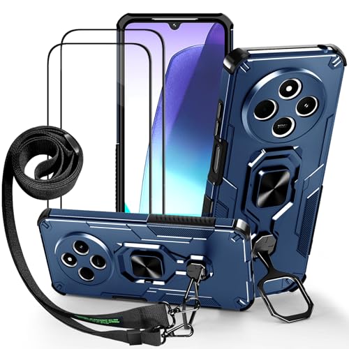 Lonjanfon Outdoor Coque avec Cordon pour Xiaomi Redmi 14C/Poco C75,Support 360°Rotatif,2 HD Verre Trempé, Militaire Antichoc Housse Etui pour Redmi 14C/Poco C75 5G/4G - Bleu