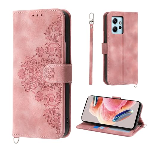 Auslbin Fleur Coque Redmi Note 12 4/5G / Poco M6 Pro 5G / Note 12R 6.67", 5 Cartes étui de Protection en Cuir PU de Style Vintage pour Note 12 4/5G Housse, Rose