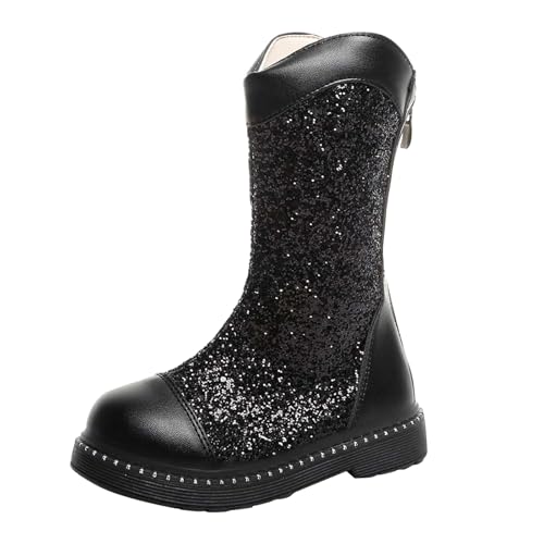 Bottes à paillettes pour filles moyennes et âgées avec fermeture éclair à l'arrière, bottes mi-mollet pour marche sur le podium, bottes d'hiver pour filles 36, Noir , 30.5 EU