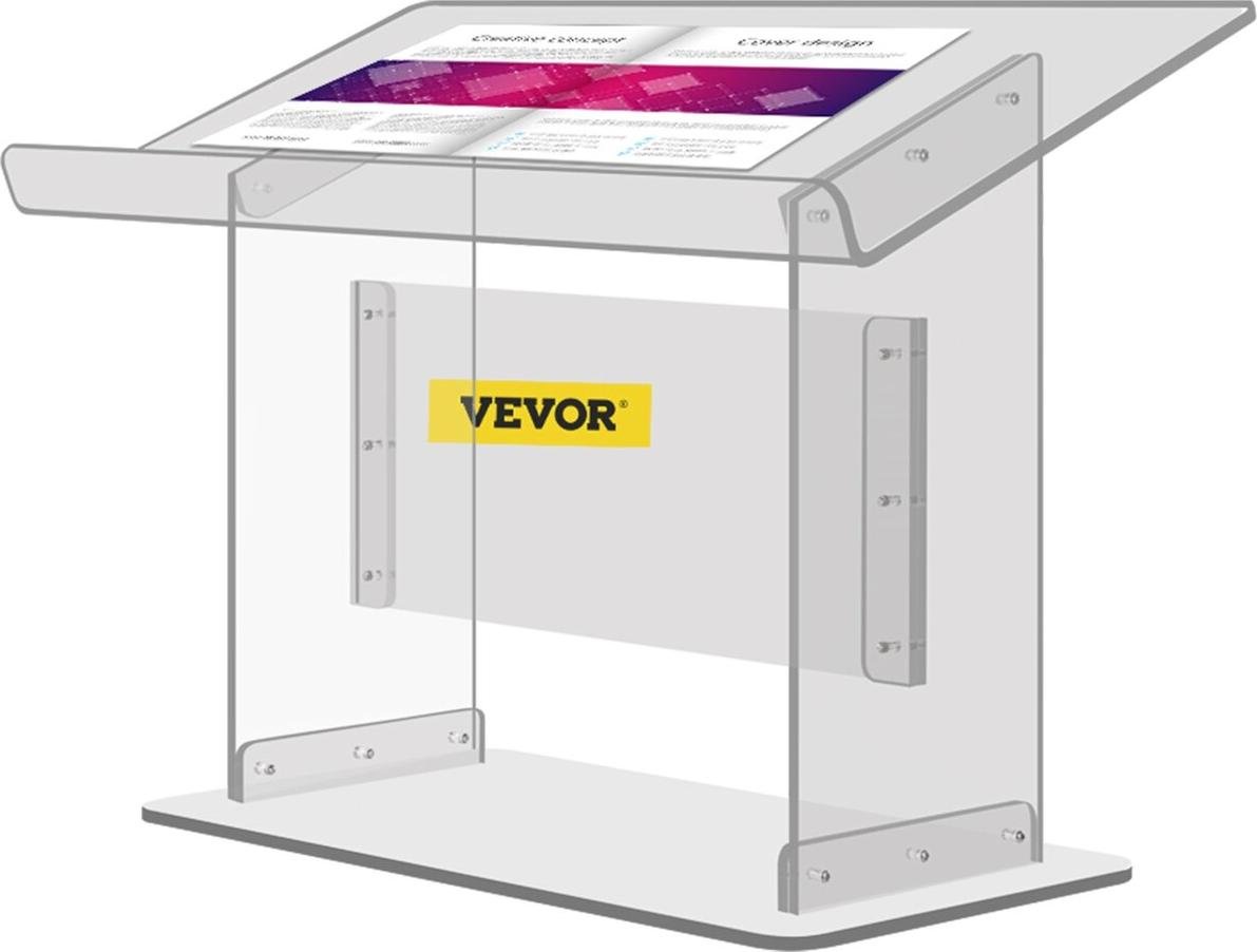 SUBZONAL-Pupitre de Conférence 68,5x33x120 cm Podium de Présentation Acrylique Plan Incliné avec Étagère de Stockage Lutrin Débout pour Présentation Réception Bureau École Église Restaurant Transpare