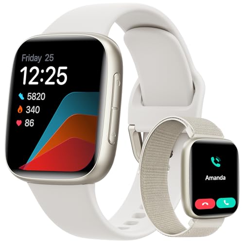 Montre Connectée Homme Femme pour Samsung,iPhone,Android,1,8" Montre Connectée Femme avec Appel Bluetooth,Voix de l'IA,Alexa intégrée,Smartwatch Moniteur de SpO2,Sommeil,Podometre,Calories,IP68-Blanc