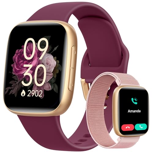 Montre Connectée Femme pour Samsung,iPhone,Android,1,8" Montre Connectée Femme avec Appel Bluetooth,Voix de l'IA,Alexa intégrée,Smartwatch Moniteur de SpO2,Sommeil,Podometre,Calories,IP68-Rouge