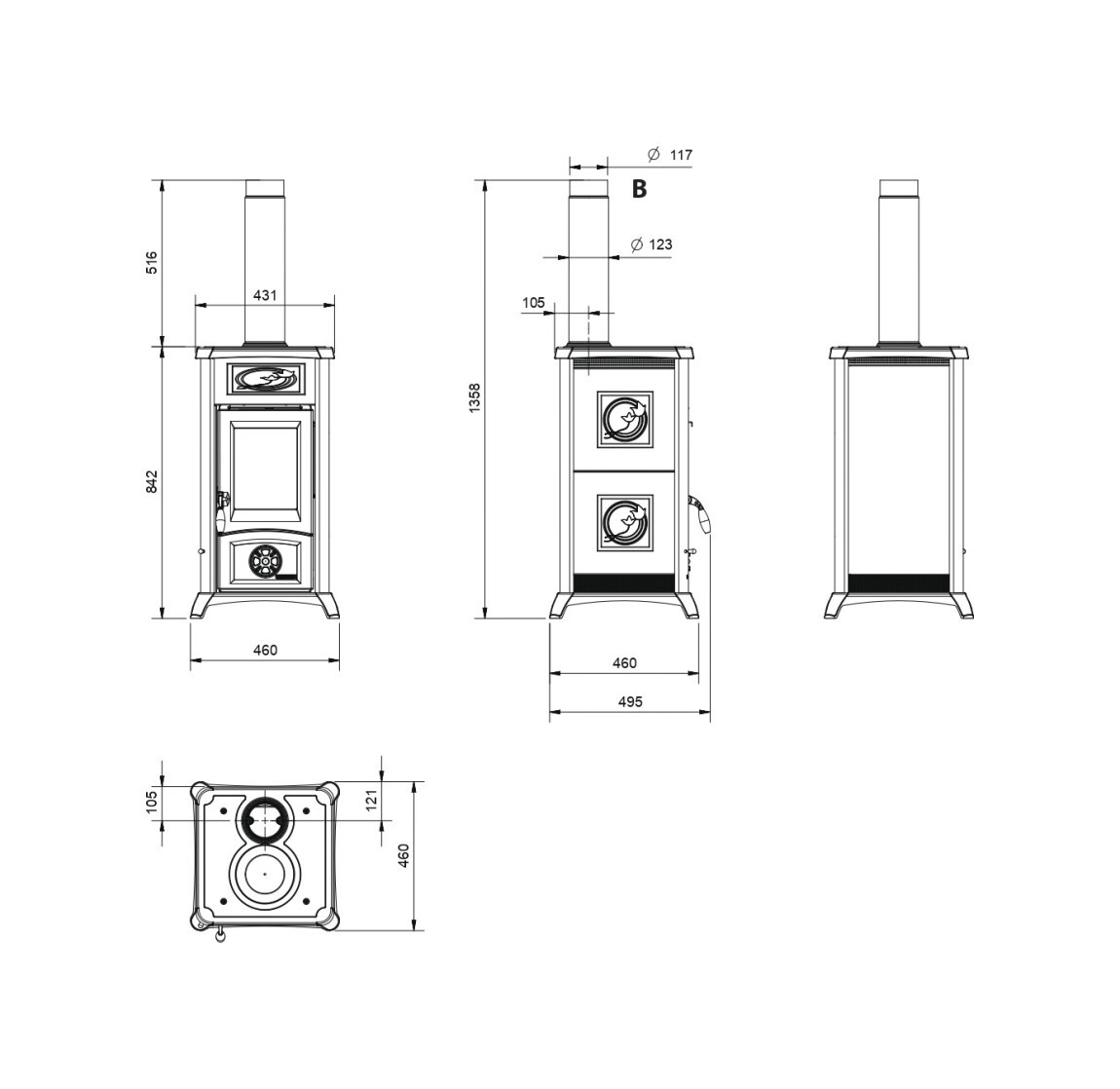 87.3 cm, 46.8 cm, 109.1 cm, Poêle à bois